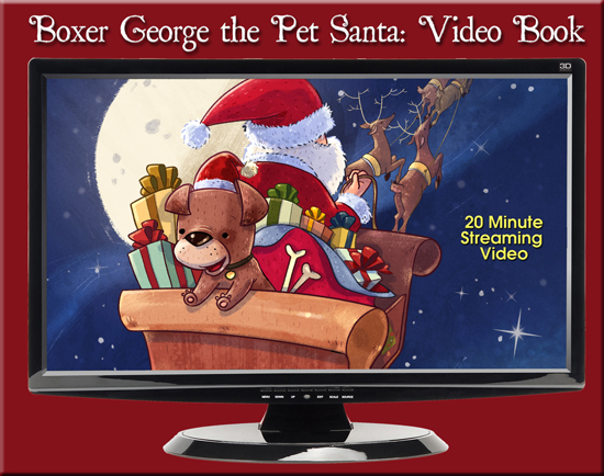 This is the heartwarming story about a young puppy dog and his fight to save his mom and friends from the dark and dingy dog pound. A combination of determination – and a profound faith in the words of his mother – drives young Boxer George to escape his fate and to become a new hero sitting at the side of Santa Claus.